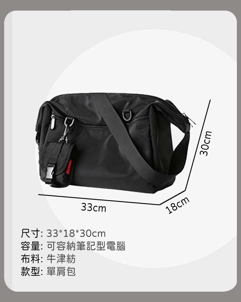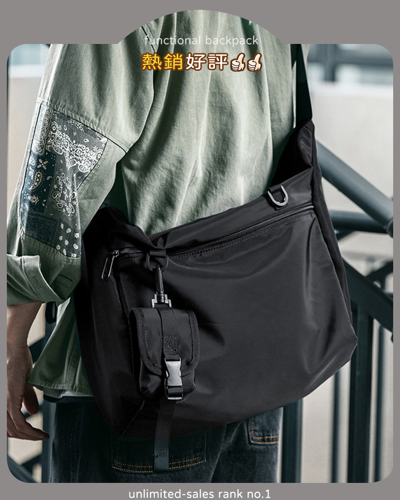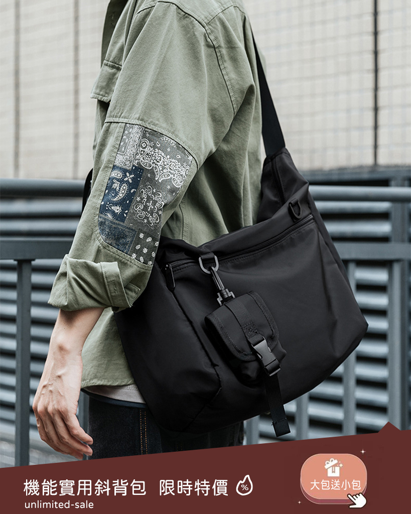 「3315機能實用斜背包」可容納14寸平板or筆電大小,外觀造型不是說突出顯眼,但卻非常耐看且實用,採用了牛津紡防潑水耐磨面料,臨時遇到下雨天也不用害怕擔心!現在購買還贈送同款小掛包,絕對超值別錯過!
