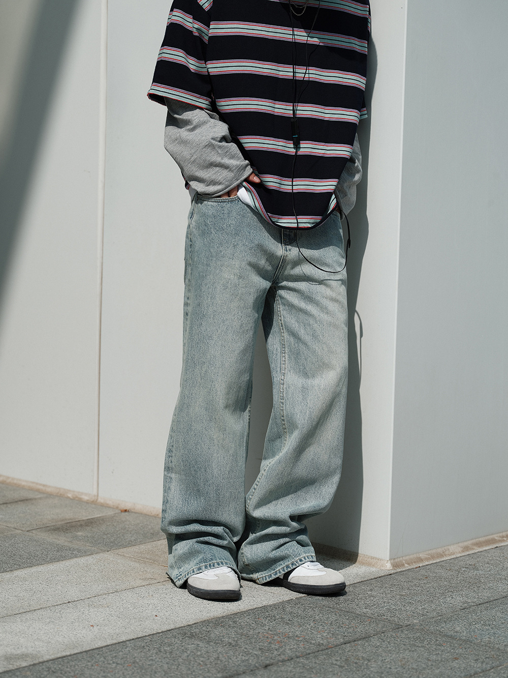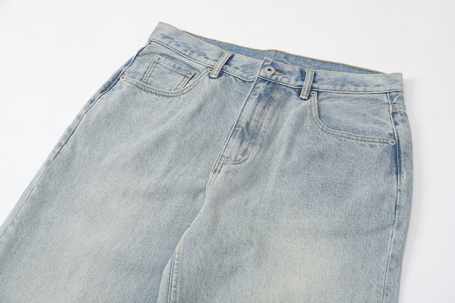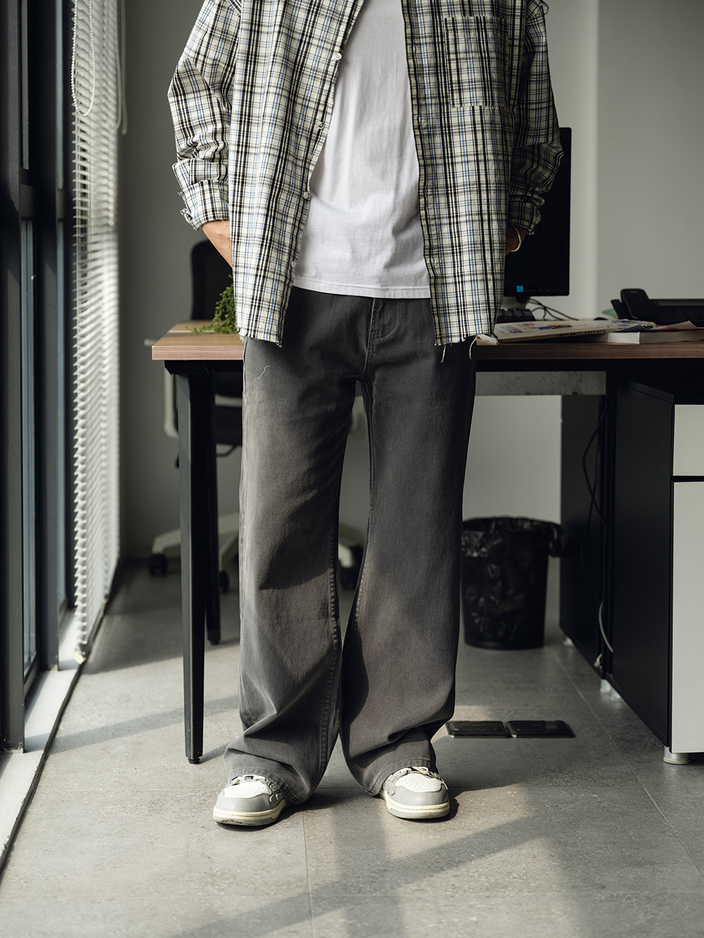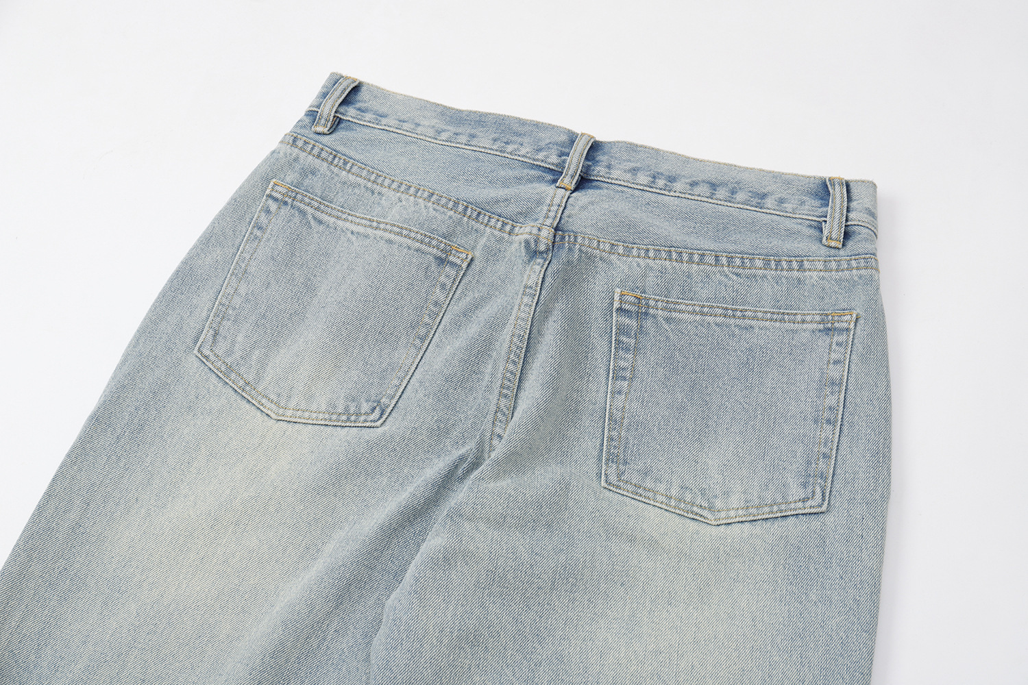 2024秋冬款,基礎百搭的牛仔長褲,面料已經過水洗預縮及脫色處理,質地柔軟非常舒適,這次在版型上做了加長微喇叭的寬鬆褲型,很適合在秋冬做日系風格的穿搭使用。