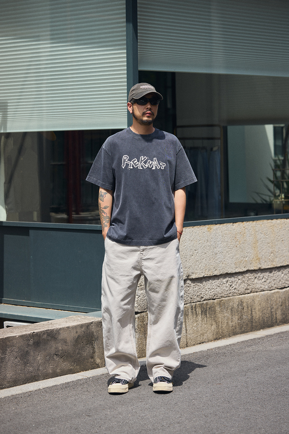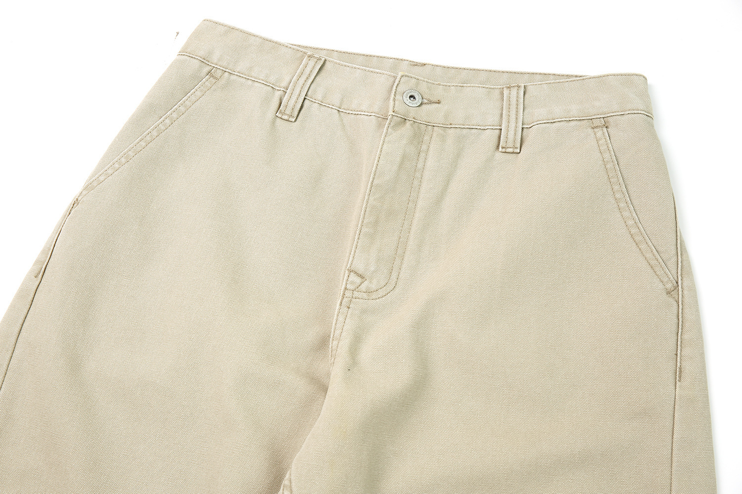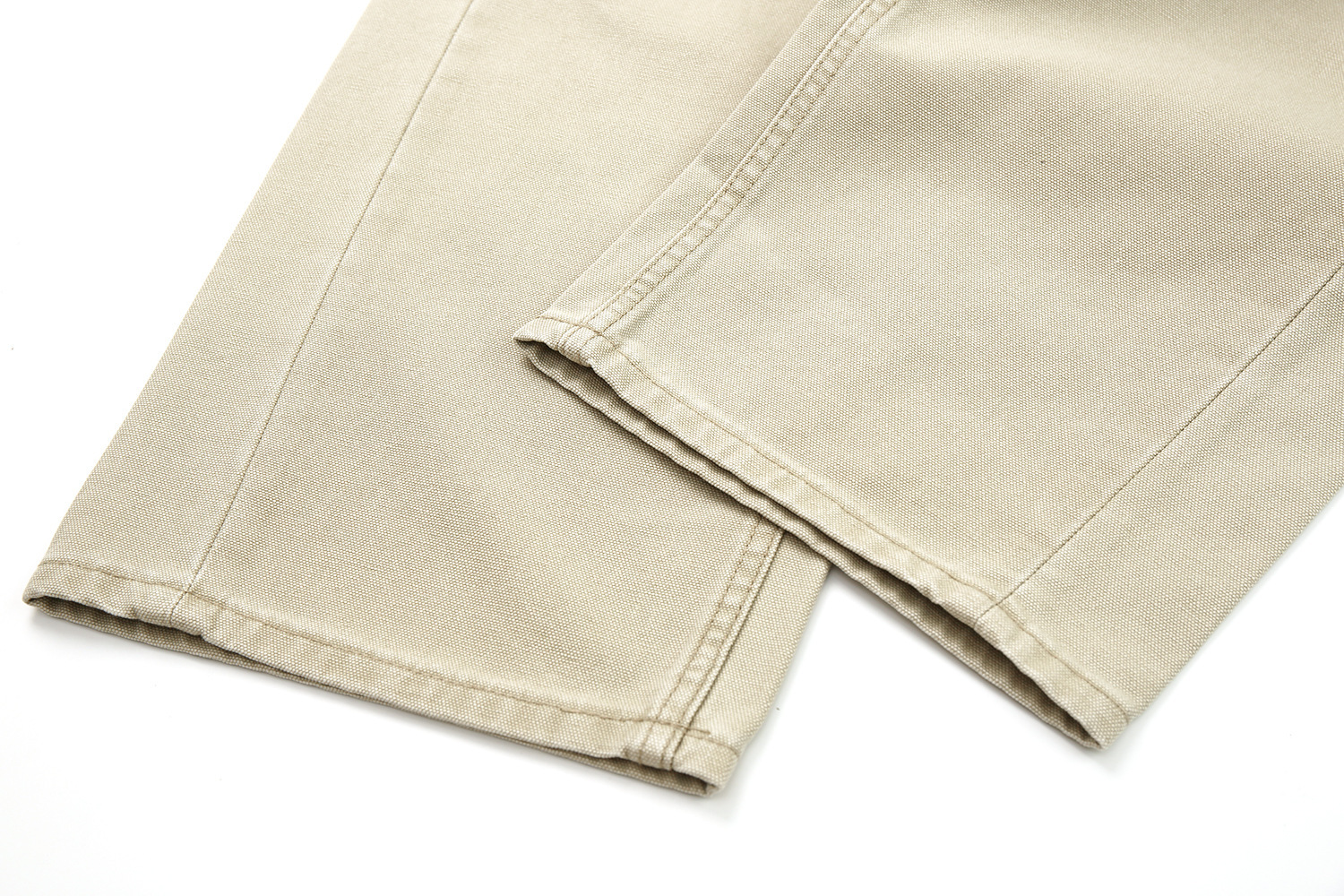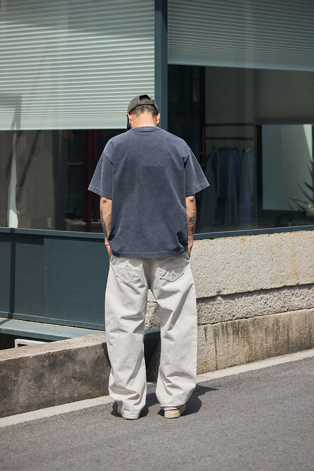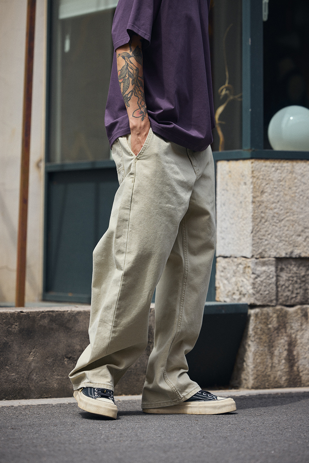 2025春夏款,採用460克仿帆布混紡面料,有著帆布自然粗曠手感,面料緊密厚實耐穿,已經過特殊水洗程序處理,不用擔心洗後縮水、退色等問題,經典彎刀褲版型,寬鬆闊挺非常百搭!!