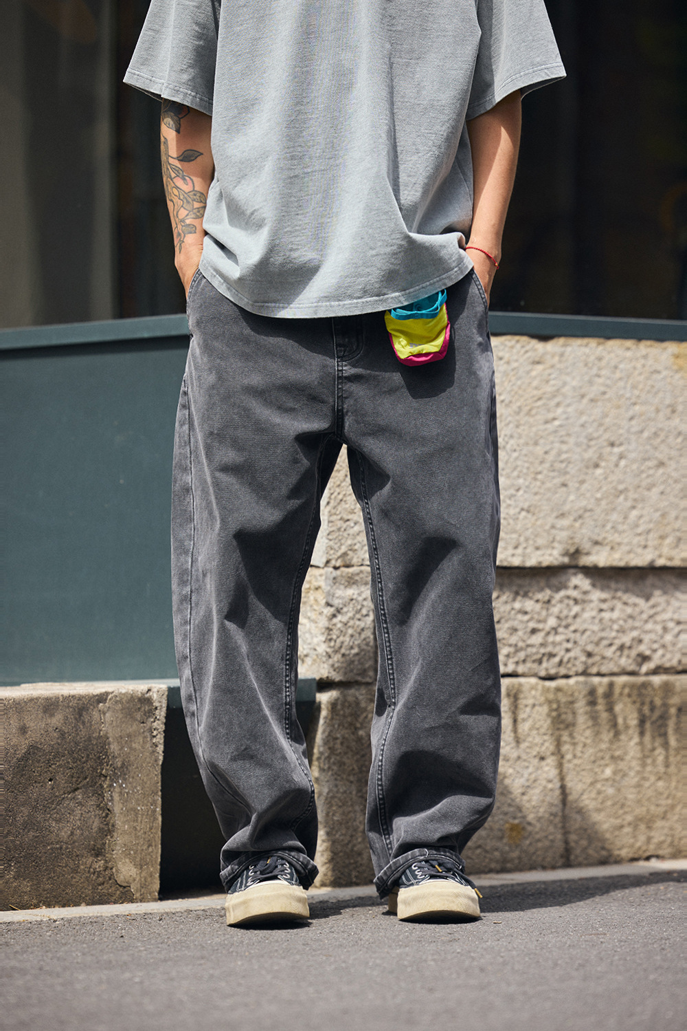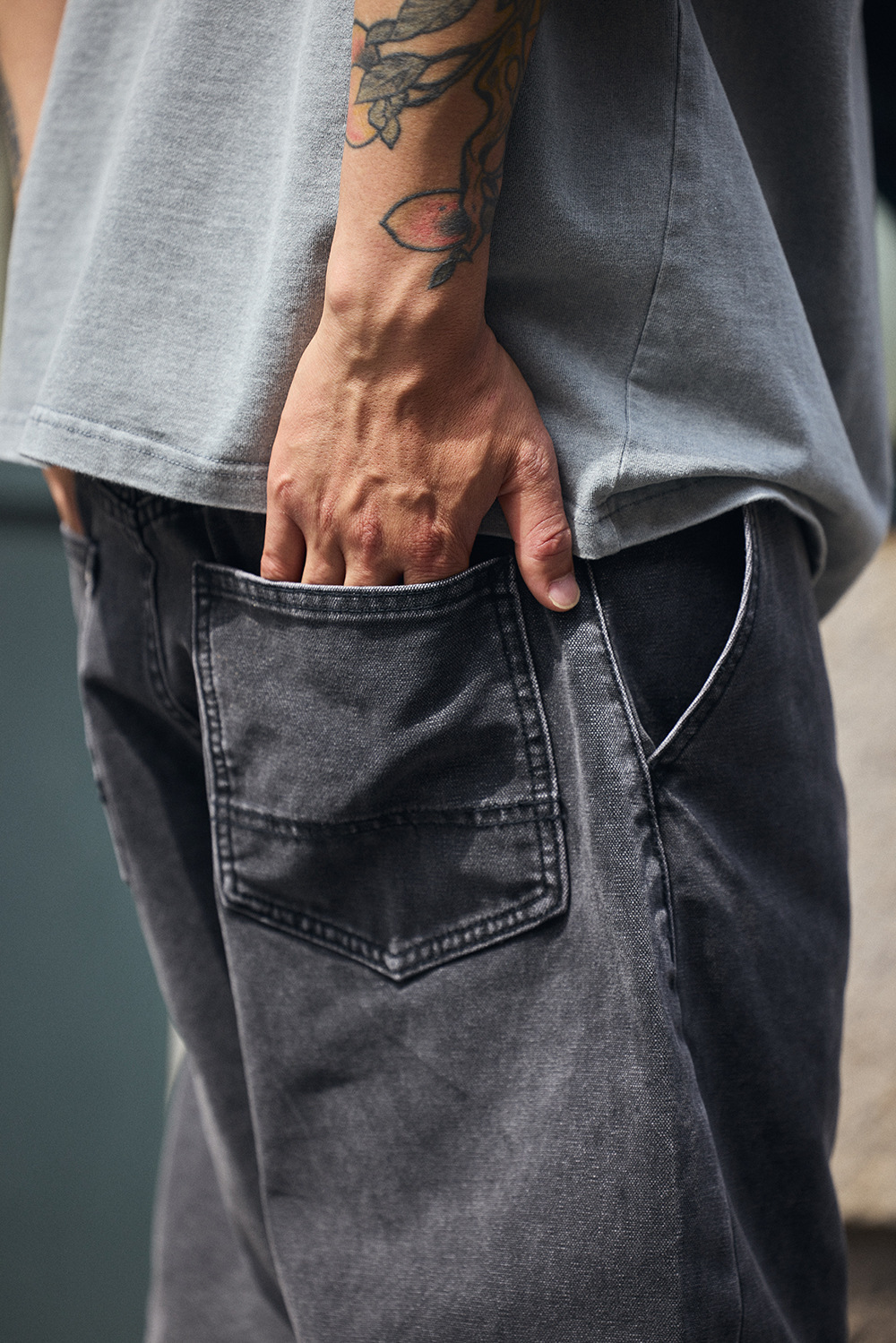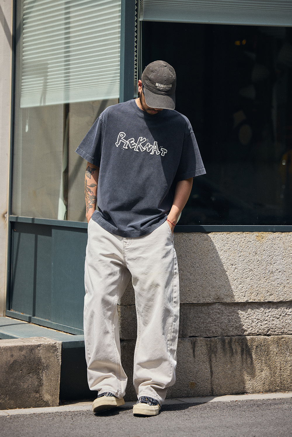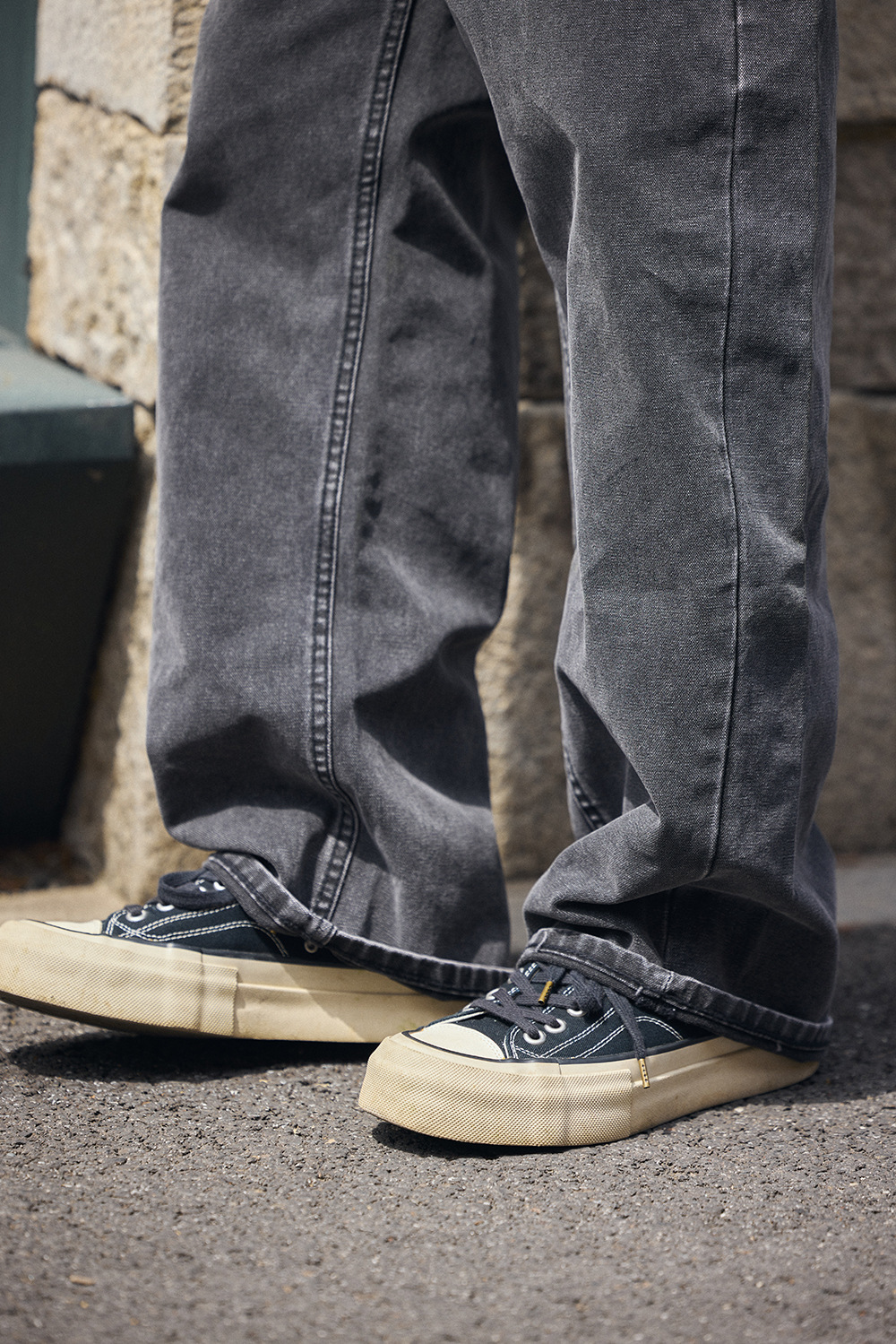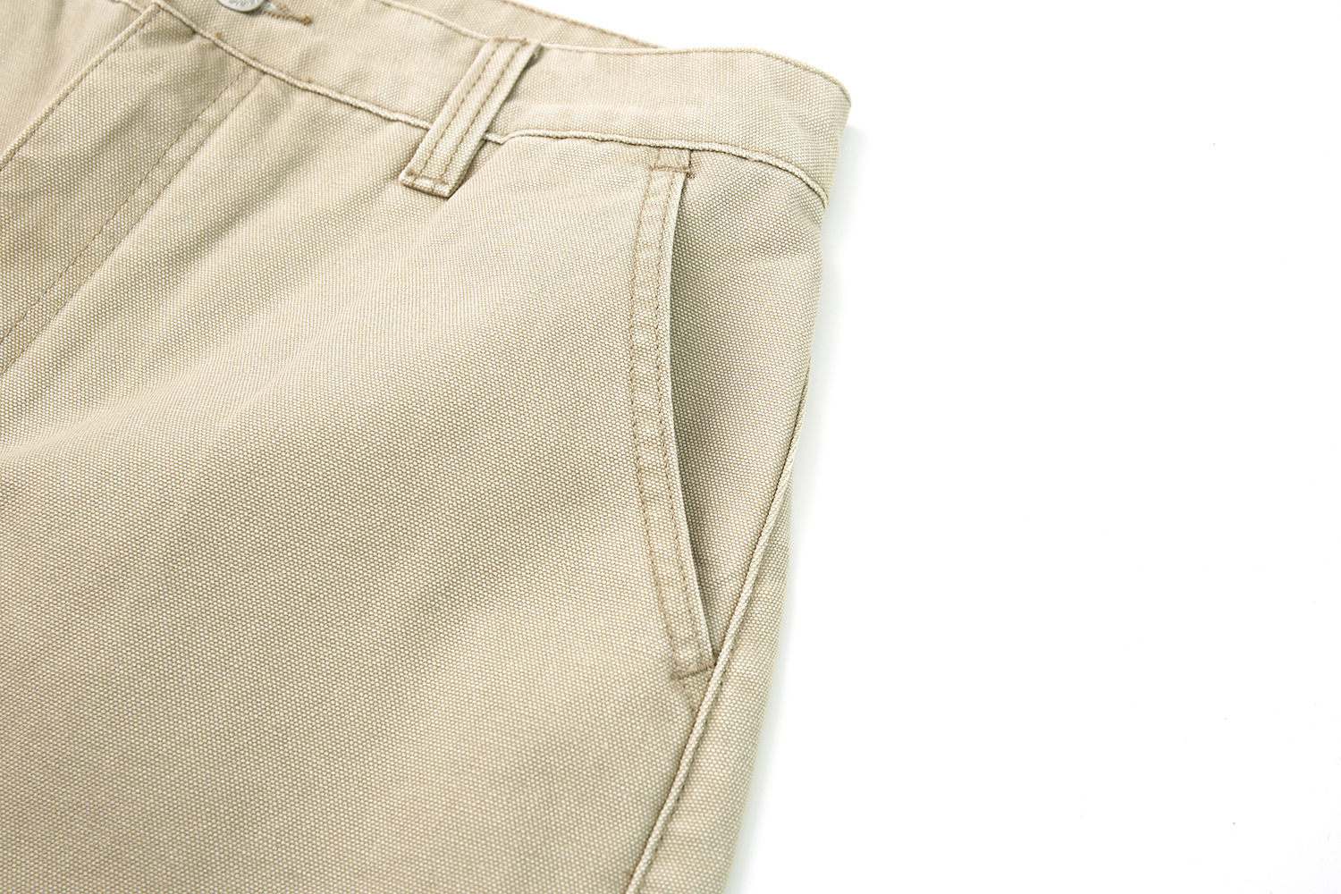 2025春夏款,採用460克仿帆布混紡面料,有著帆布自然粗曠手感,面料緊密厚實耐穿,已經過特殊水洗程序處理,不用擔心洗後縮水、退色等問題,經典彎刀褲版型,寬鬆闊挺非常百搭!!