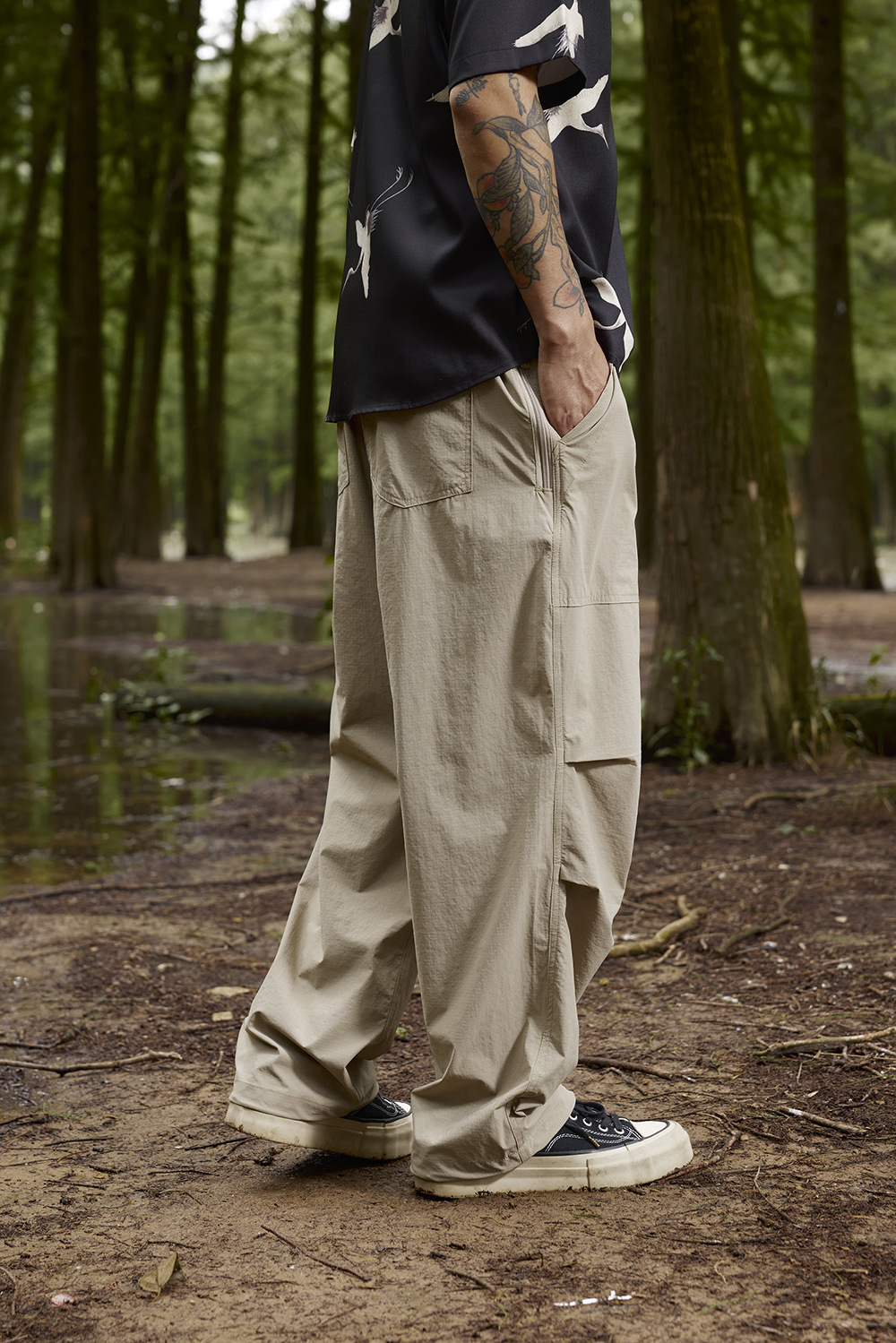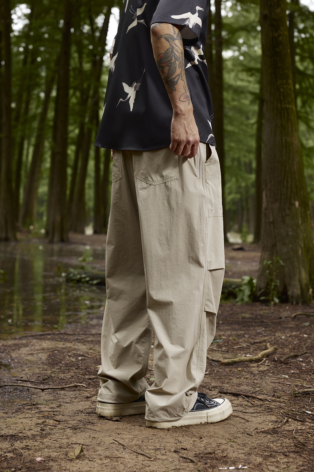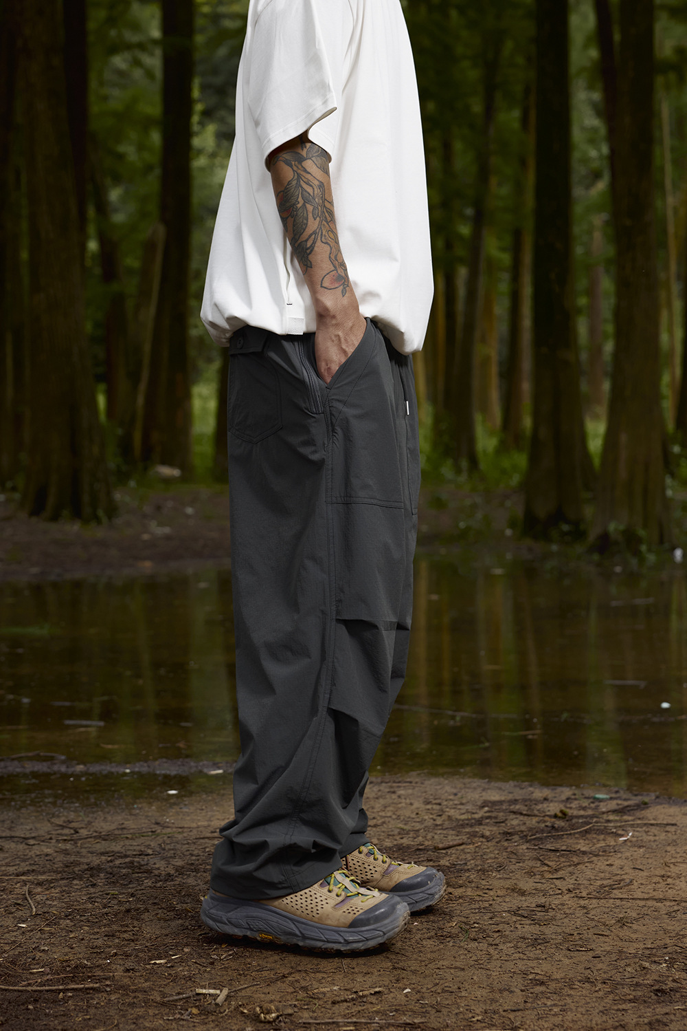 2025春夏款,此款採用輕薄涼感格紋面料,具有透氣速乾、輕柔觸感、彈性等特性,四季皆可穿著,直筒寬鬆版型搭配束腳抽繩設計,很適合休閒穿搭著用。