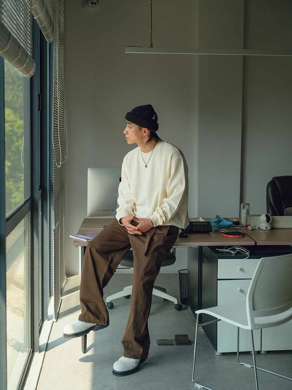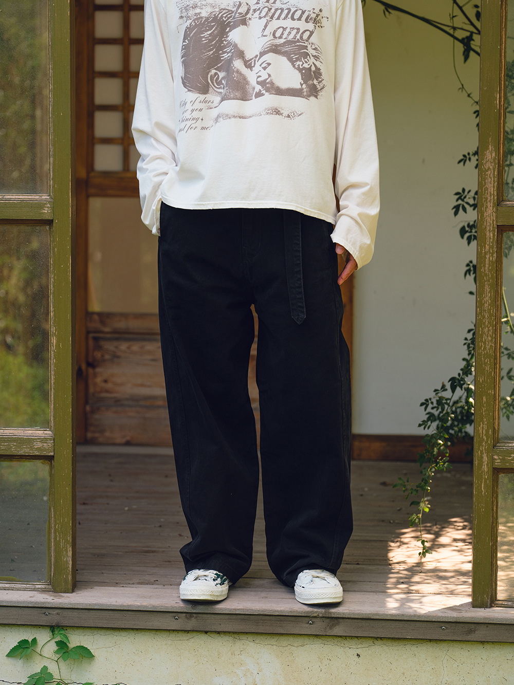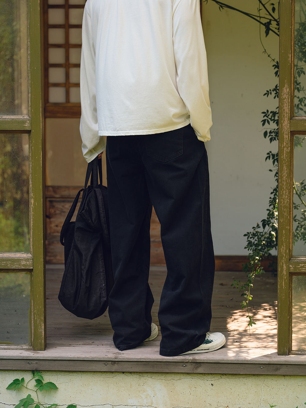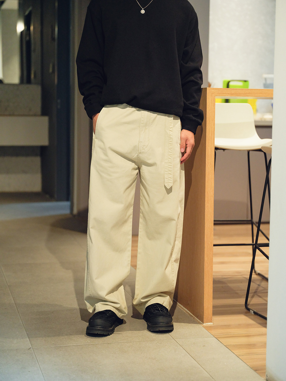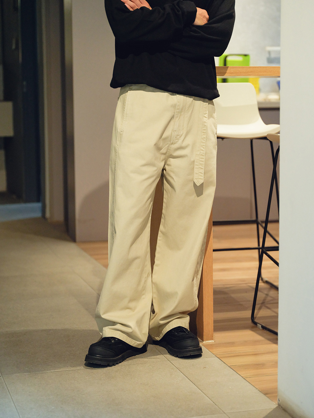 2025秋冬款,此款採用精梭純棉斜紋面料,精梭指一種經過精細處理的棉織物,僅保留細長且整齊的纖維進行織造,成衣水洗後為褲子控制縮水率,水洗後的質感及觸感都有更好的體驗,復古彎刀褲版型非常適合今年秋冬著用。