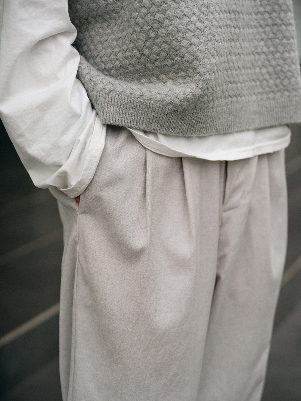 2026春夏款,此款採用亞麻混紡面料,具有回彈抗變形的伸展性,且保留了棉質纖維的柔軟觸感,同時還有很好的透氣效果,是一件質感與舒適兼具的亞麻休閒褲!!