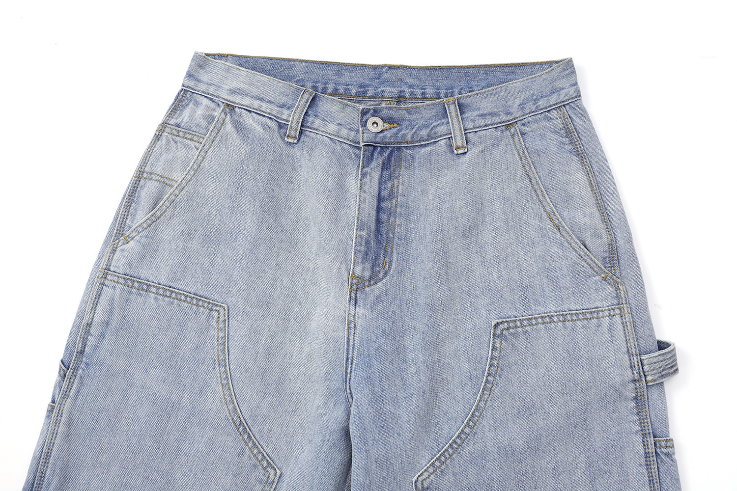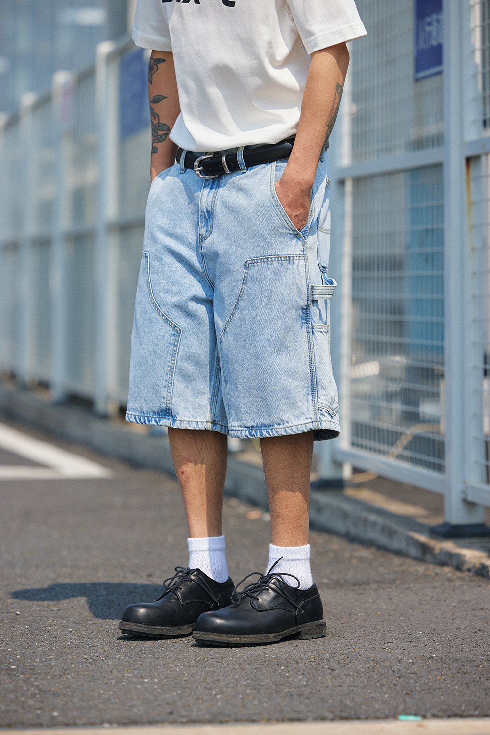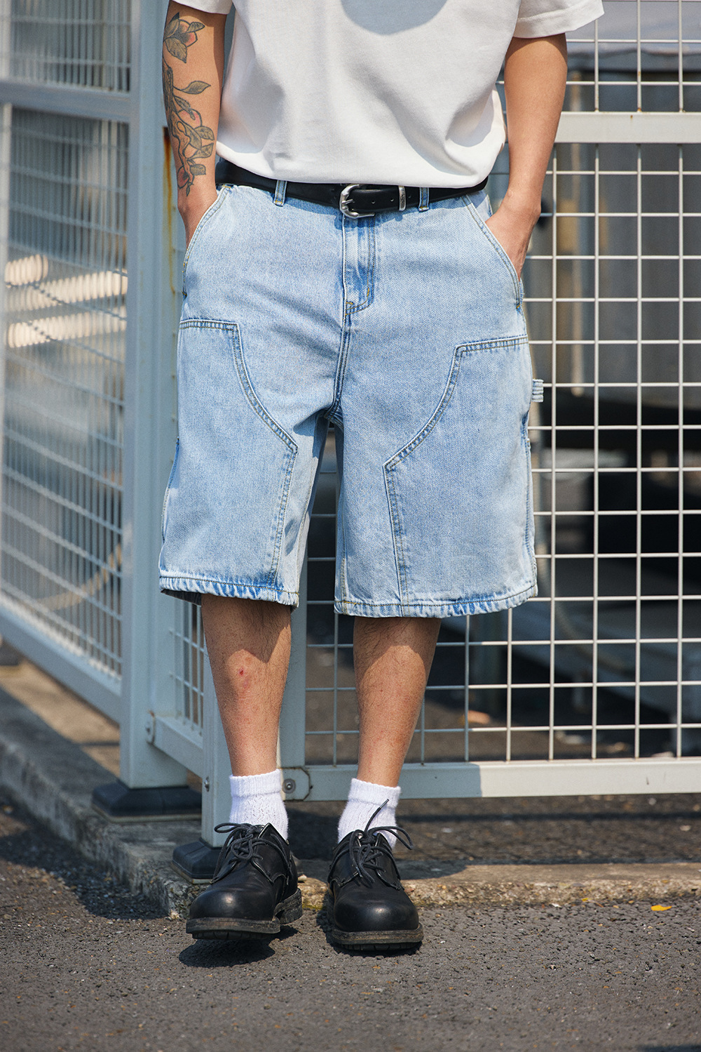 2026春夏款,12.OZ的竹節棉牛仔面料,質地柔軟耐穿度極佳,成衣經過水洗程序處理,不怕洗後縮水變形,雙膝伐木工裝褲造型搭配六分褲版型設計,喜歡街頭感雅痞風的朋友千萬別錯過!!