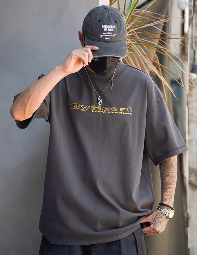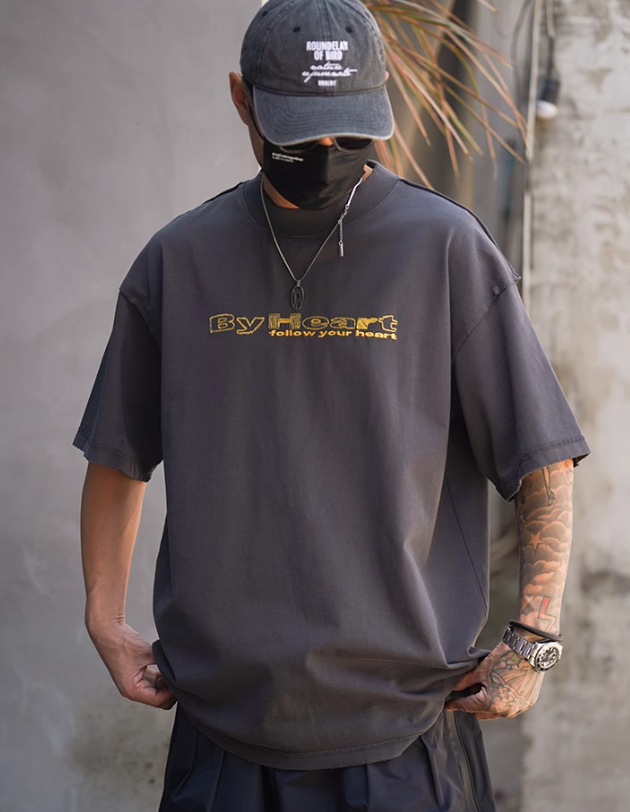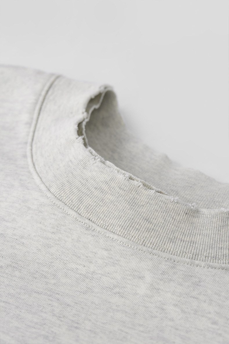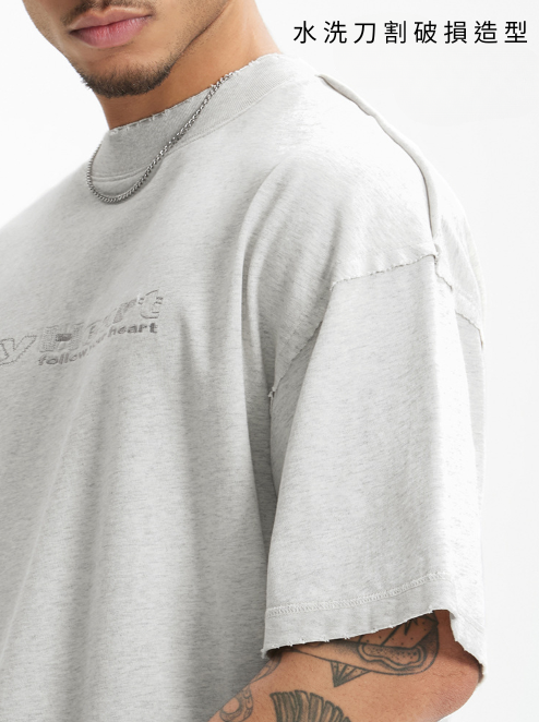 2025春夏款,此款採用260克純棉舒適面料,領口及肩線的刀割破損造型,以及質感簡約的字母刺繡設計,搭配微寬鬆落肩版型,街頭穿搭必備單品!!