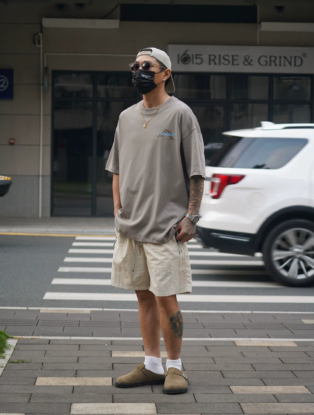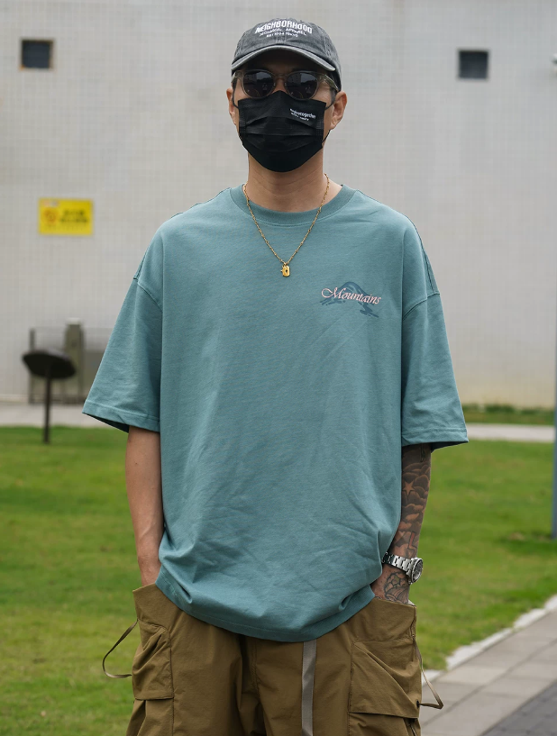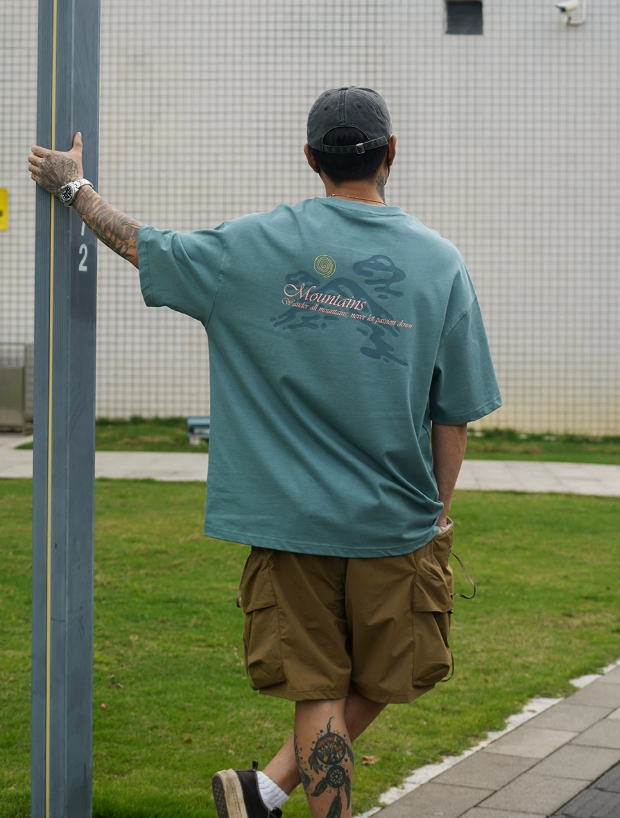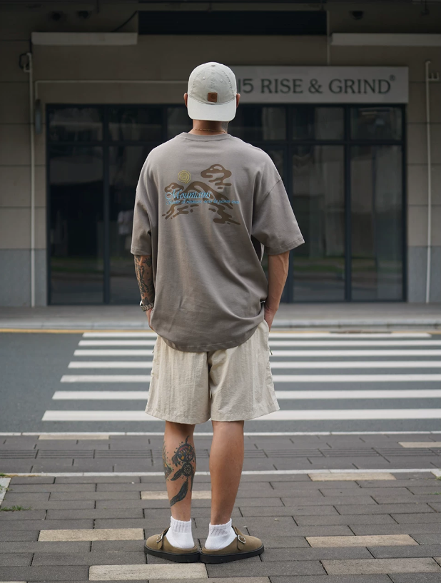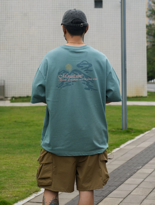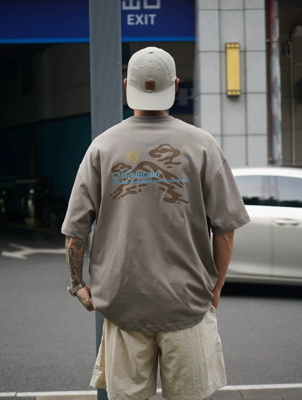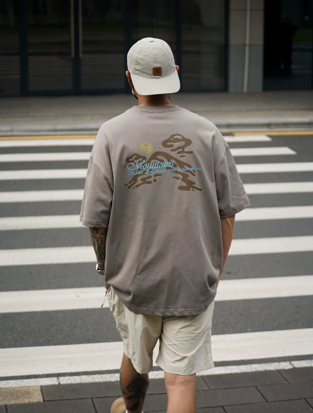 2026春夏款,此款採用舒適精梳純棉的300克面料,山系戶外風格印花圖案,搭配寬鬆落肩微長版型,春夏周末外出百搭上衣款!