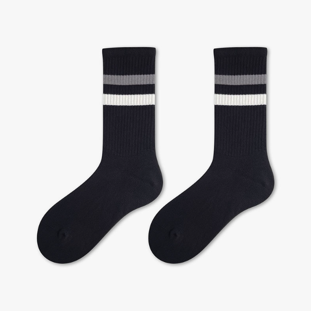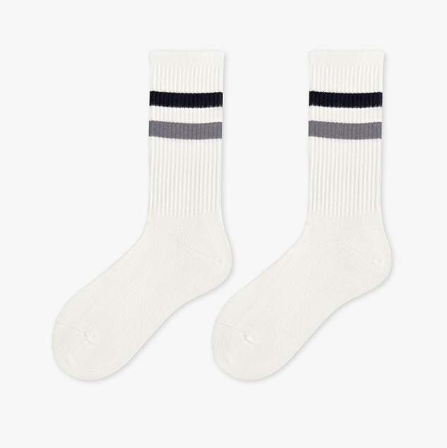 運動風百搭條紋中筒襪