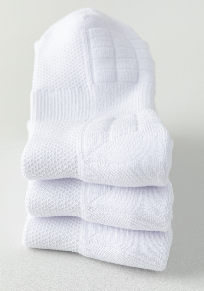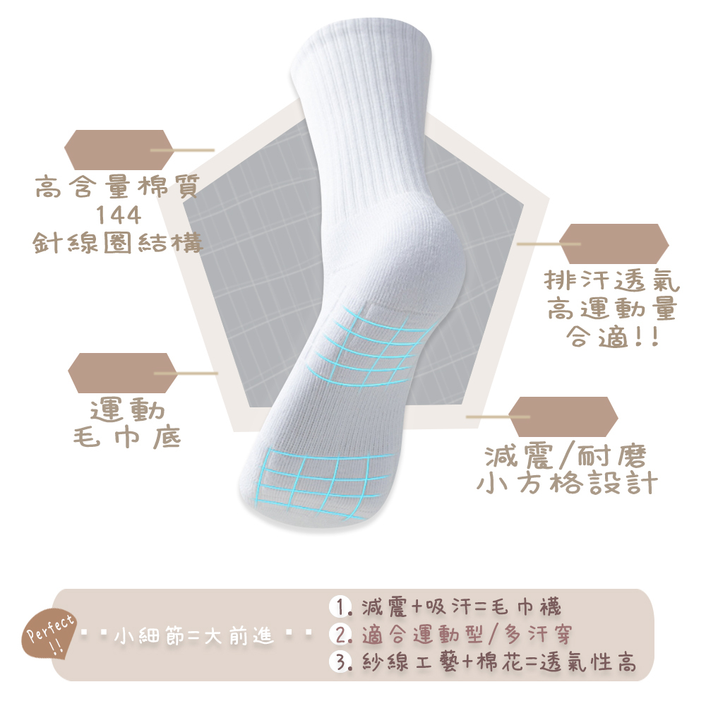 彈力螺紋、排汗透氣、減震耐磨、超舒適運動毛巾底。