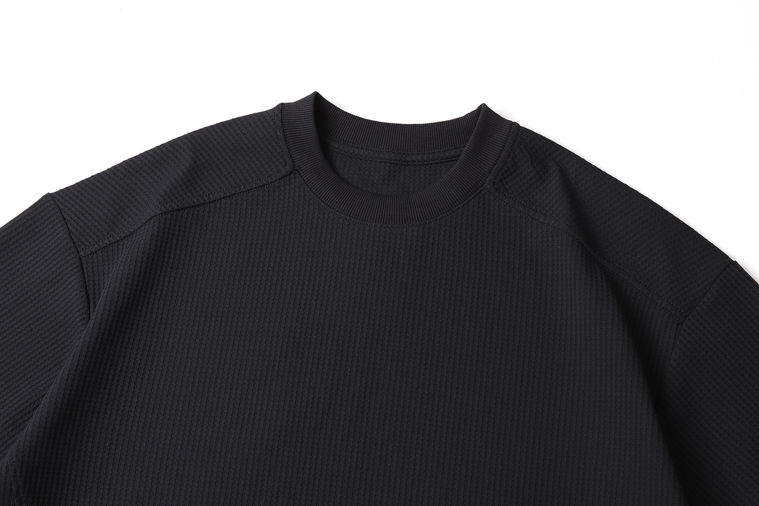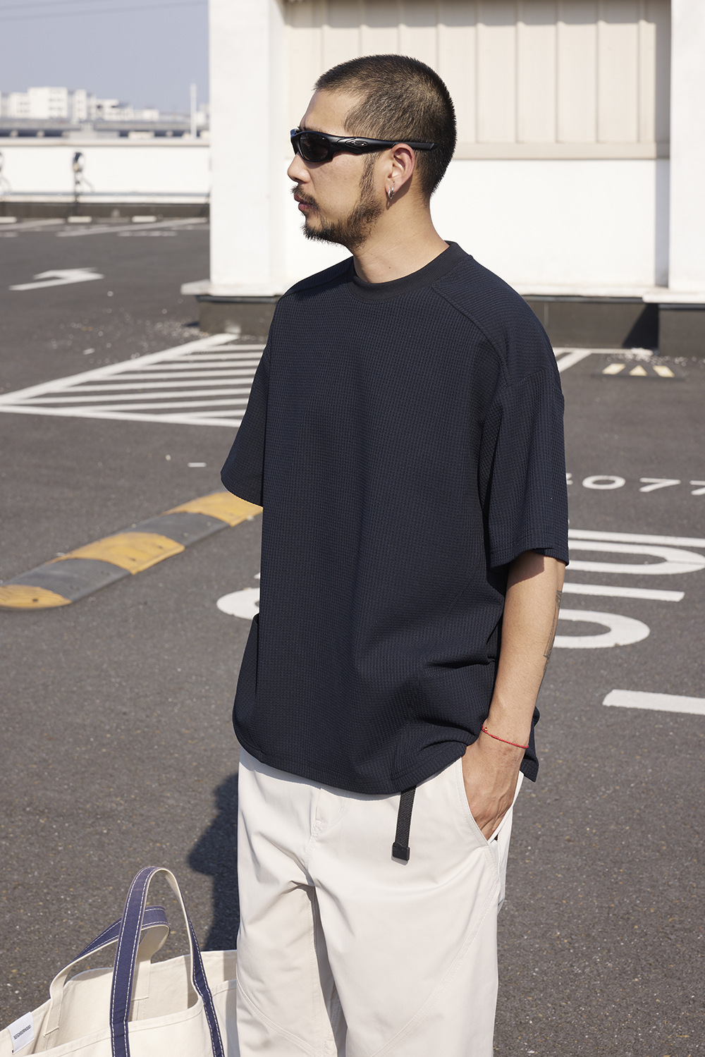2025春夏款,此款採用SOLOTEX華夫格面料,親膚舒適觸感以及抗皺不易變形特性,且面料透氣排汗,能將汗水迅速蒸發,而立體剪裁讓上身更有廓挺感,下擺也增加口袋設計,不僅視覺效果佳也很實用!!