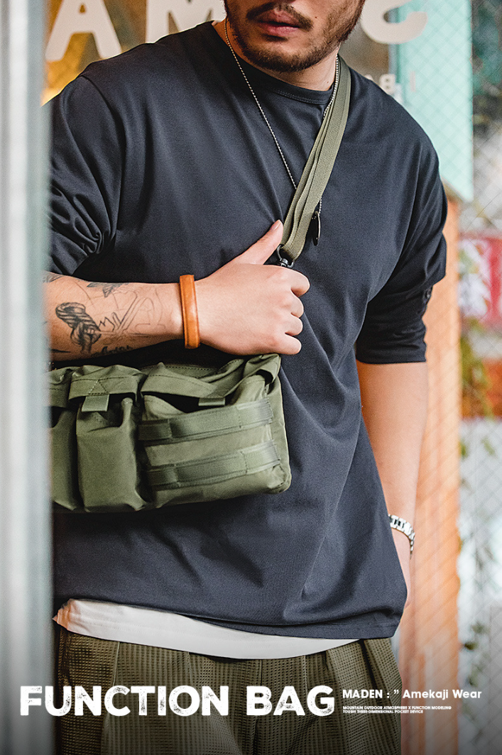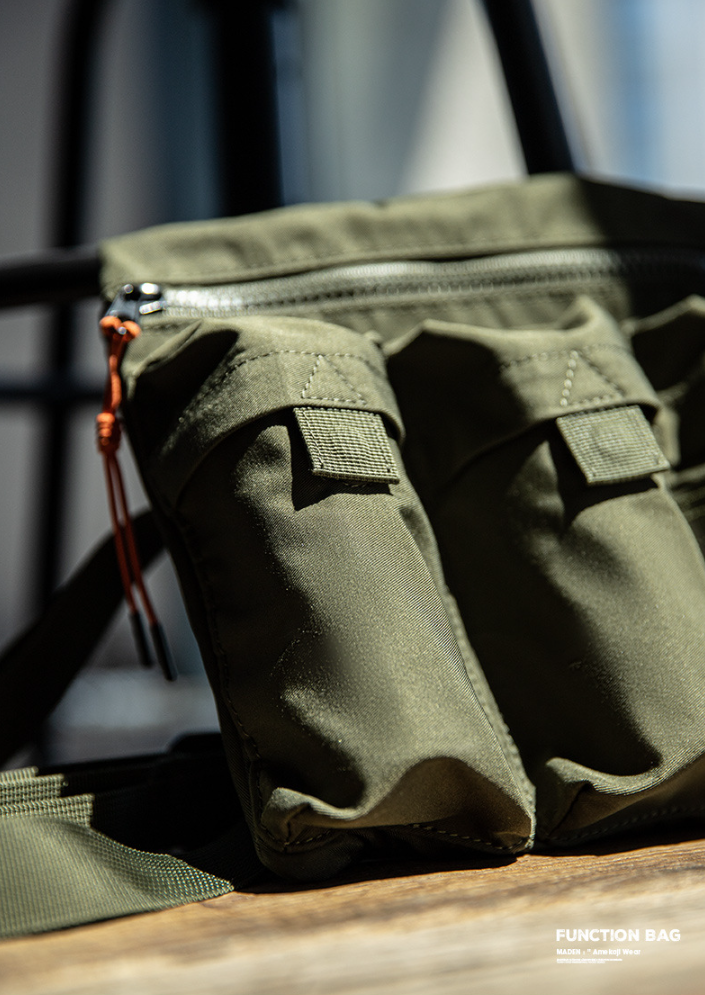 採用多口袋工裝造型設計,便利的物品收納空間,質感也是無可挑剔,也可做為腰包使用。