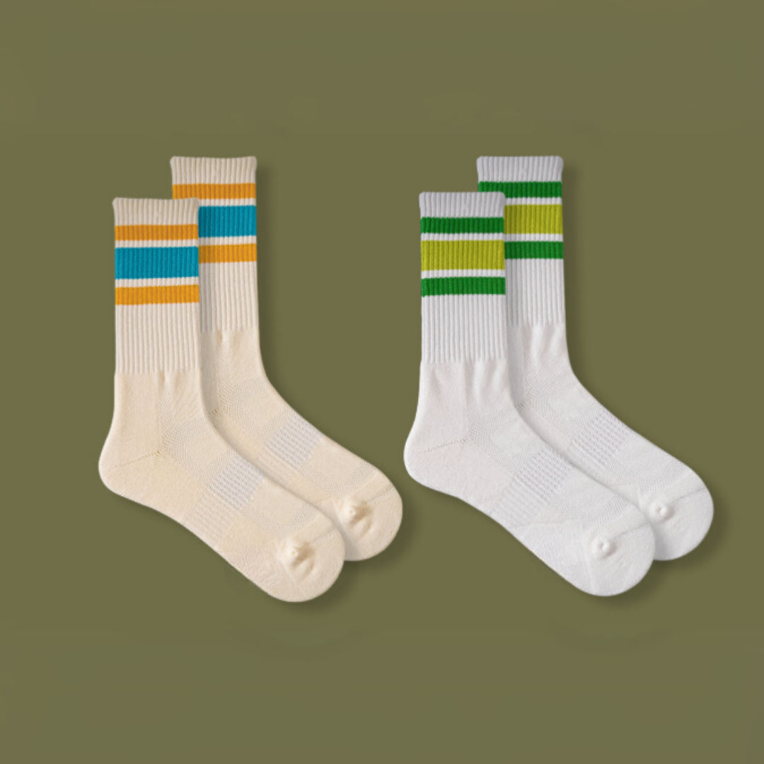 此款採用精梳棉+彈力纖維混織而成,以及毛巾底增加舒適厚實腳感,搭配夏日專屬的清新配色,很適合春夏穿搭著用,喜愛條紋襪千萬別錯過。